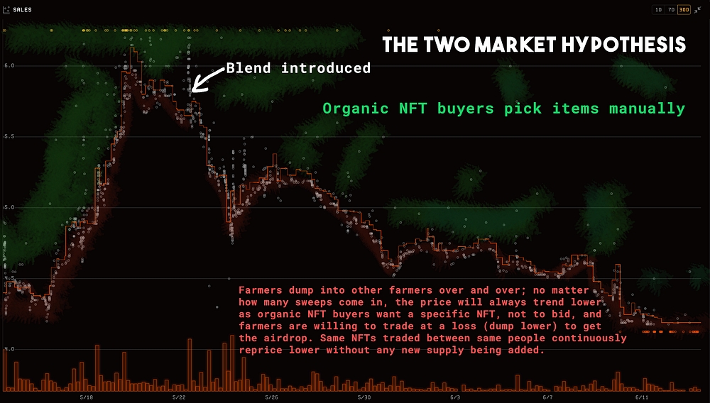 As farmers leverage Blend to shorten their NFT hold times and enhance their farming efficiency, it simultaneously magnifies the dichotomy between the two diverging markets — the farmers and the genuine NFT buyers.